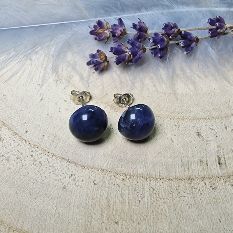 Sodalit - napichovacie náušnice v striebre Ag925 (9 mm/polgula)