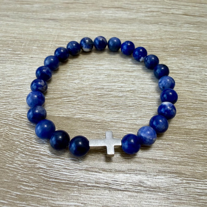 Sodalit - PÁNSKY náramok s krížikom (Ø gul. 8 mm)