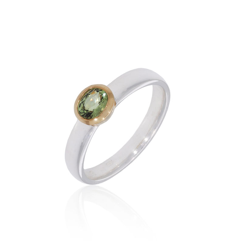 Strieborný prsteň Ag 925/1000 so Sphenom s povrchovou úpravou Au