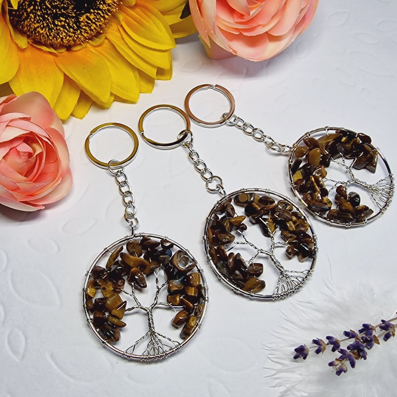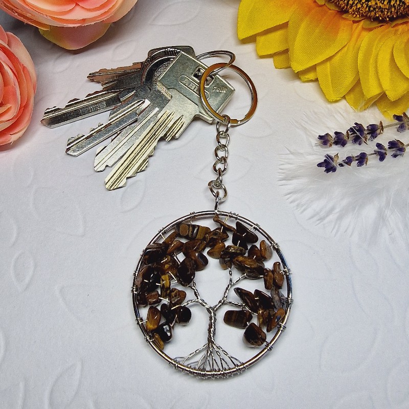 Tigrie oko - kľúčenka strom života 5 cm (1ks)