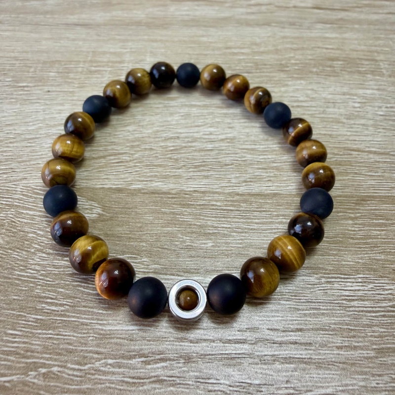 Tigrie oko + Ónyx (matný) - PÁNSKY náramok (Ø gul. 8 mm)