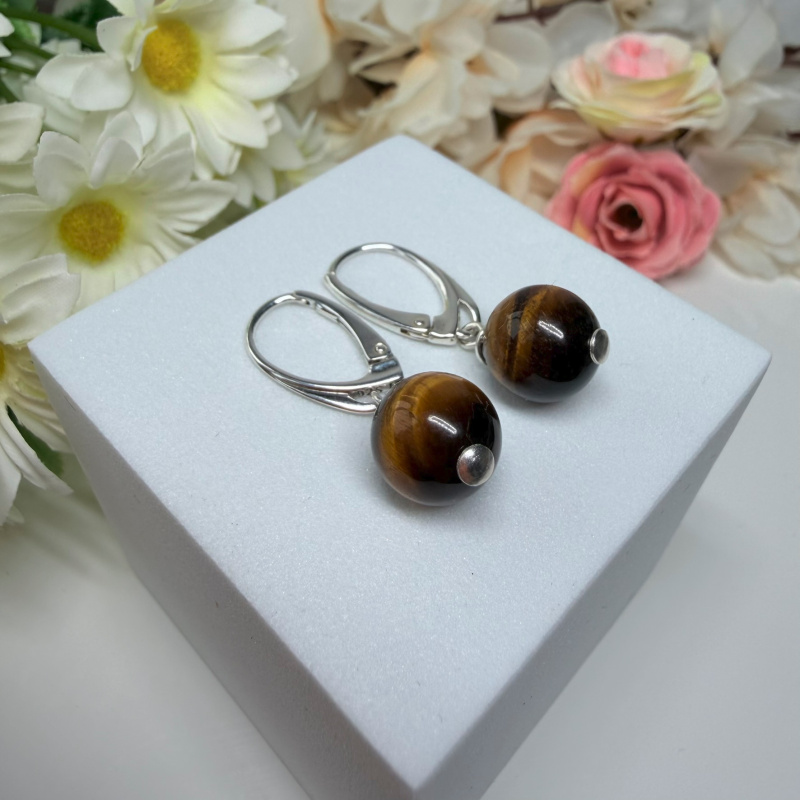 Tigrie oko - visiace náušnice v striebre (Ø gul. 10 mm)