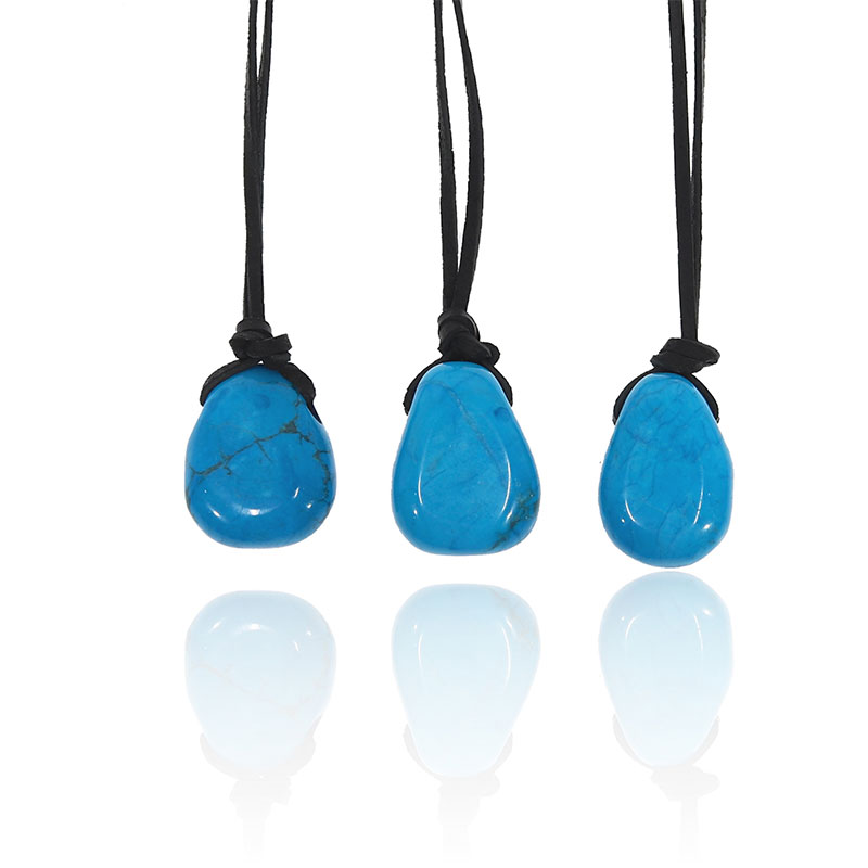 Tyrkenit (farbený) - prívesok vŕtaný s koženou šnúrkou (1ks)